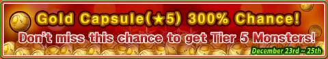 From the Rare Capsule(Draw), the probability of Gold Capsule(★5) is increased.